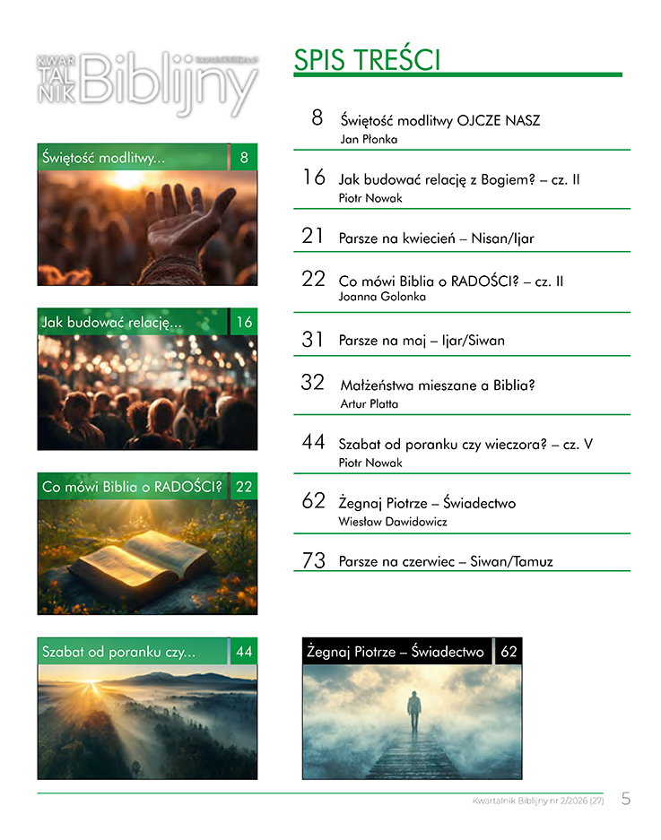 Artur Platta debiutuje w kwartalniku artykułem poświęconym zagadnieniu małżeństw mieszanych. Jest to interesująca analiza biblijna, ukazująca różne aspekty tego tematu w świetle Pisma Świętego oraz podejmująca polemikę z utrwalonymi stereotypami.